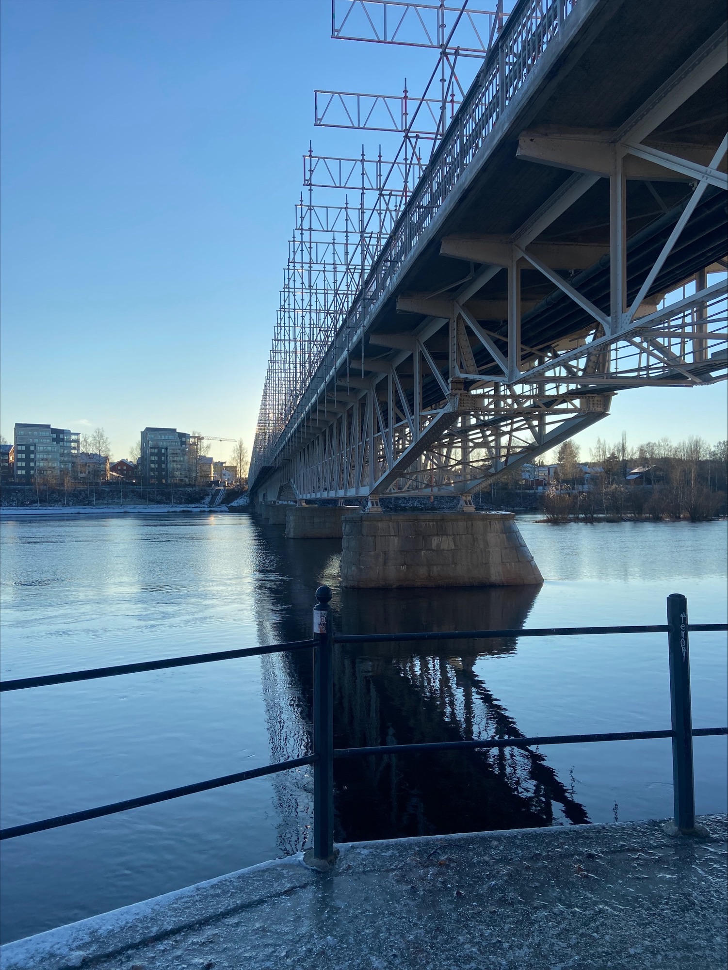 Arbetet omfattar betongarbete och reparation av brons kantbalkar, där ena sidan ska åtgärdas längs hela bron på grund av omfattande skador. Den andra sidan repareras delvis, efter bedömning på plats. För att möjliggöra arbetet har hängställning byggts längs båda långsidorna. Reparationerna pågår fram till årsskiftet, men beräknas vara klara innan vintern.